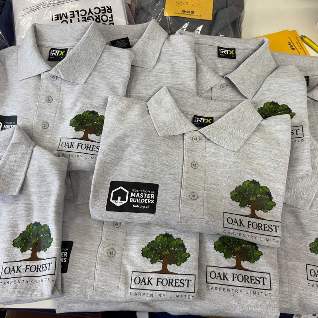 All items are available in a choice of colours and include your branding on the chest (back print optional extra). Pricing is inclusive of VAT.